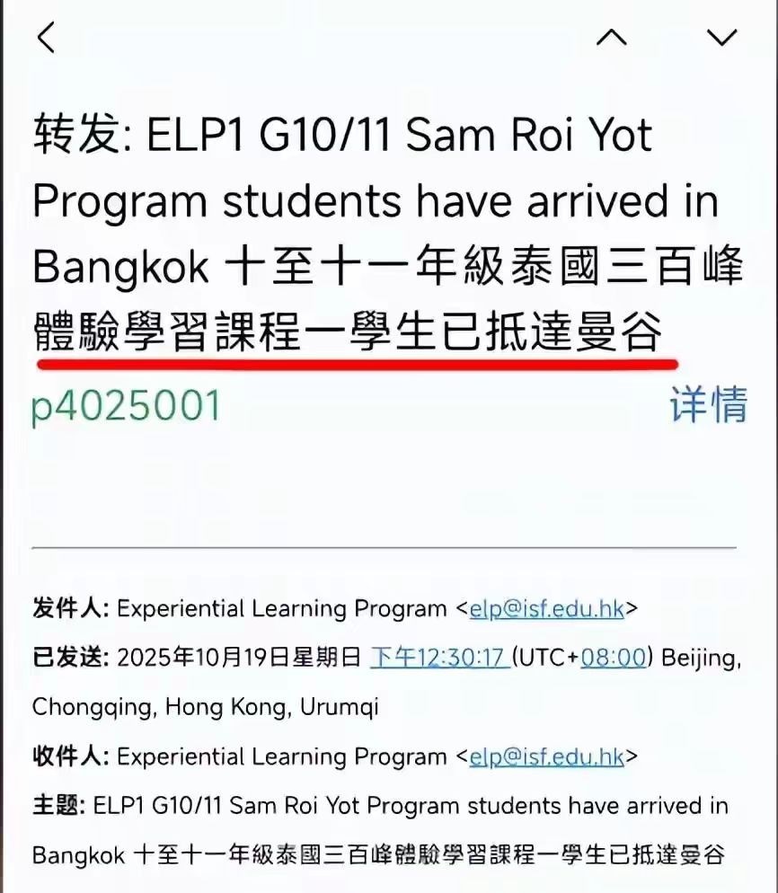 2. 今年10月19日,杨威收到一封来自学校的电子邮件,确认杨阳洋已平安抵达泰国。然而,除了这封简短的通知外,校方再无任何进一步的信息更新。对于一位牵挂孩子的家长而言,仅凭一封邮件就打发所有担忧,显然远远不够,这种信息缺失让杨威夫妇内心如悬重石。