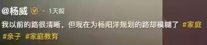 12. 尽管家人倾注了如此多的心血与牺牲,杨阳洋却并未完全理解这份深沉的父爱,反而曾质问父亲:“为什么我一定要走你们规划好的路?”这句话深深刺痛了杨威的心。作为父亲,他并非想控制孩子的人生,而是不希望儿子重复自己年少时经历过的艰辛。他只想用自己的经验,为孩子铺一条更平坦、更安全的成长路径。